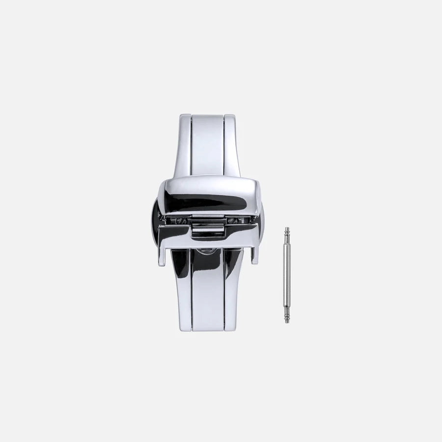 The butterfly deployant clasp replaces any type of pin buckle, offering a secure and elegant closure for your watch strap.