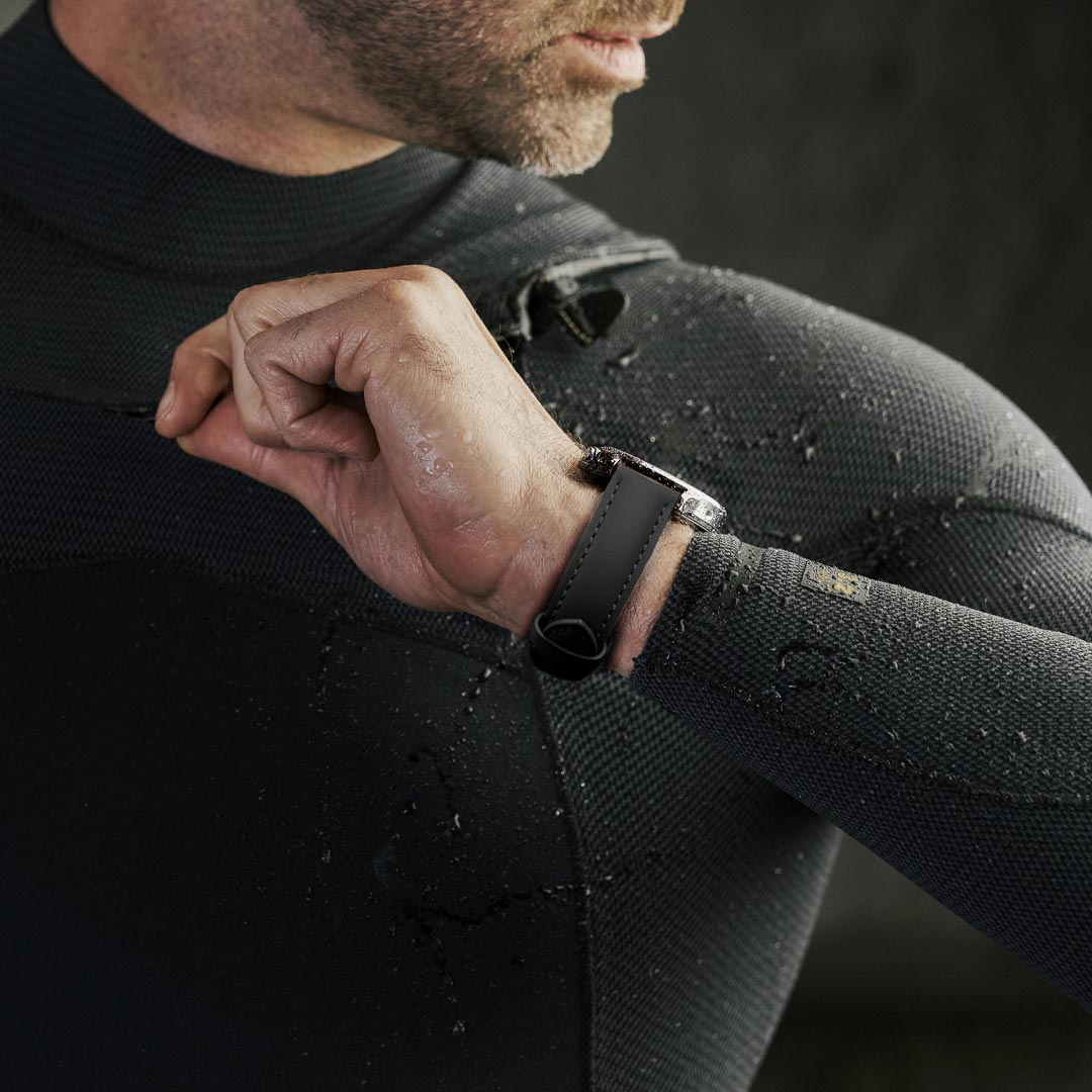 The Maison Fèvre waterproof leather watch strap is a premium accessory, ideal for water sports and even more so for scuba diving. Made from smooth waterproof calfskin, this waterproof leather watch strap features a stainless steel buckle and attaches to the sides of a dive watch dial or a waterproof chronograph. It is extremely durable, as it is cut, assembled, and hand-stitched by Maison Fèvre artisans with renowned French savoir-faire. Prefer waterproof canvas over leather ? Discover our specific product. Many of you are looking for a 20mm dive watch strap. Our dive watch strap is available in various sizes, which you can discover on our e-shop. The Maison Fèvre® waterproof leather watch strap comes in several shades, including black, brown, and navy blue, all with tone-on-tone stitching. It can be effortlessly matched with both chic and casual outfits.